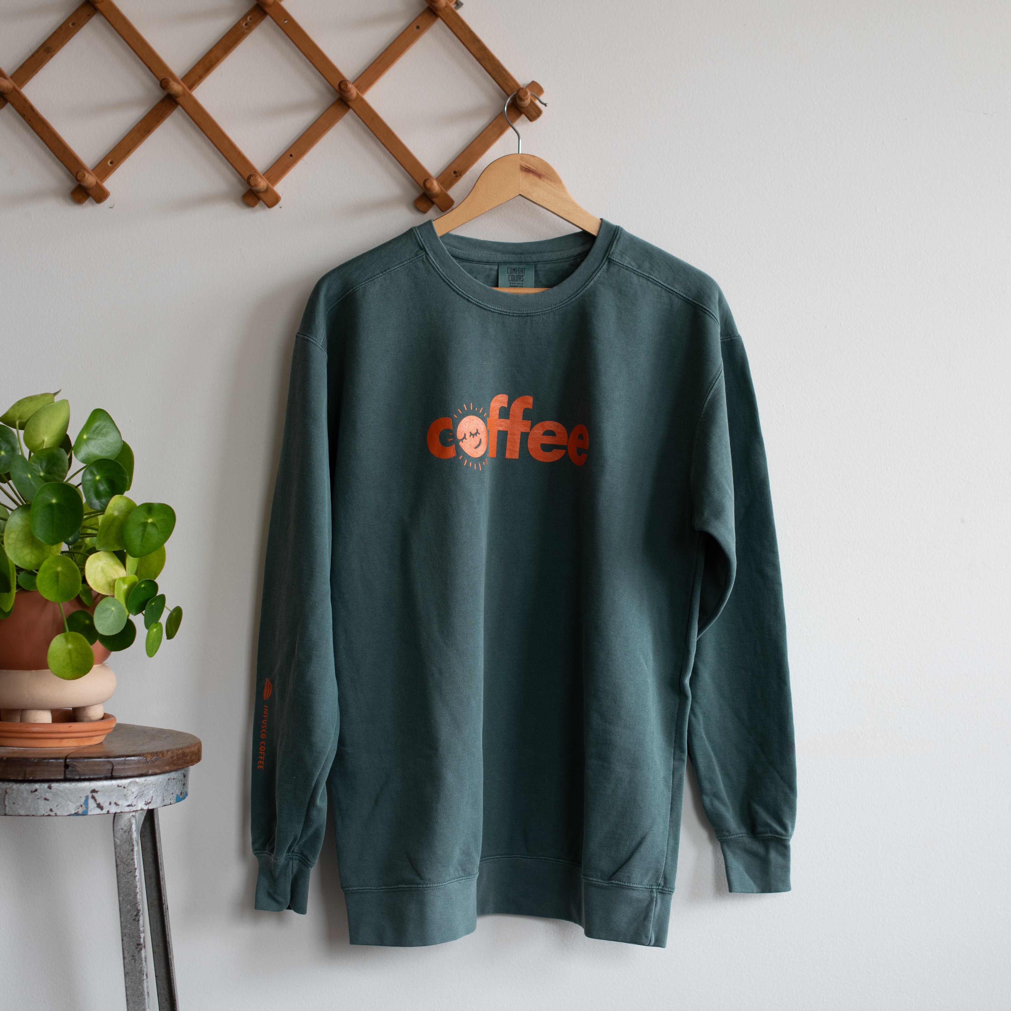 Coffee Sweatshirt with Orange Lettering