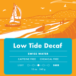 Low Tide is our take on a calmer cup. It’s caffeine free, jitter free, and full of brightness. This coffee is decaffeinated using the Swiss Water Process which gently removes caffeine using only water which draws out caffeine while preserving the coffee’s natural sweetness and balance. Like its name, Low Tide is about slowing down. A stress free moment to simply enjoy the coffee for what it is.