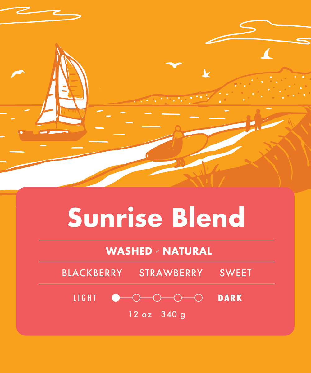 This blend is designed to brighten your everyday routine. A blend of washed and natural processed coffees, it strikes the perfect balance between clarity and character. It’s crisp and clean with a hint of funk. Smooth enough to be your daily driver but also a fun one to share with friends. The Sunrise Blend is the cup that starts your day with energy and curiosity. Like the first light in the morning, this coffee brings a quiet sense of clarity and possibility.